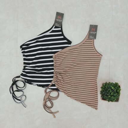 CROP MANGA CERO RUCHADO A RAYAS